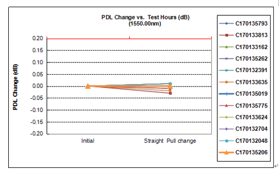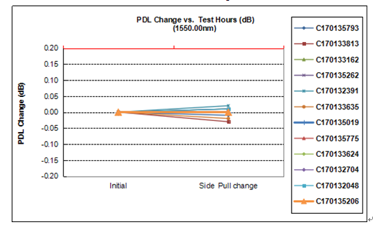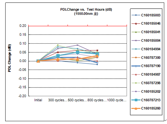 圖4TC測試PDL變化值(Temperature cycle(-40℃~+85℃) ,800 cycles qualification)