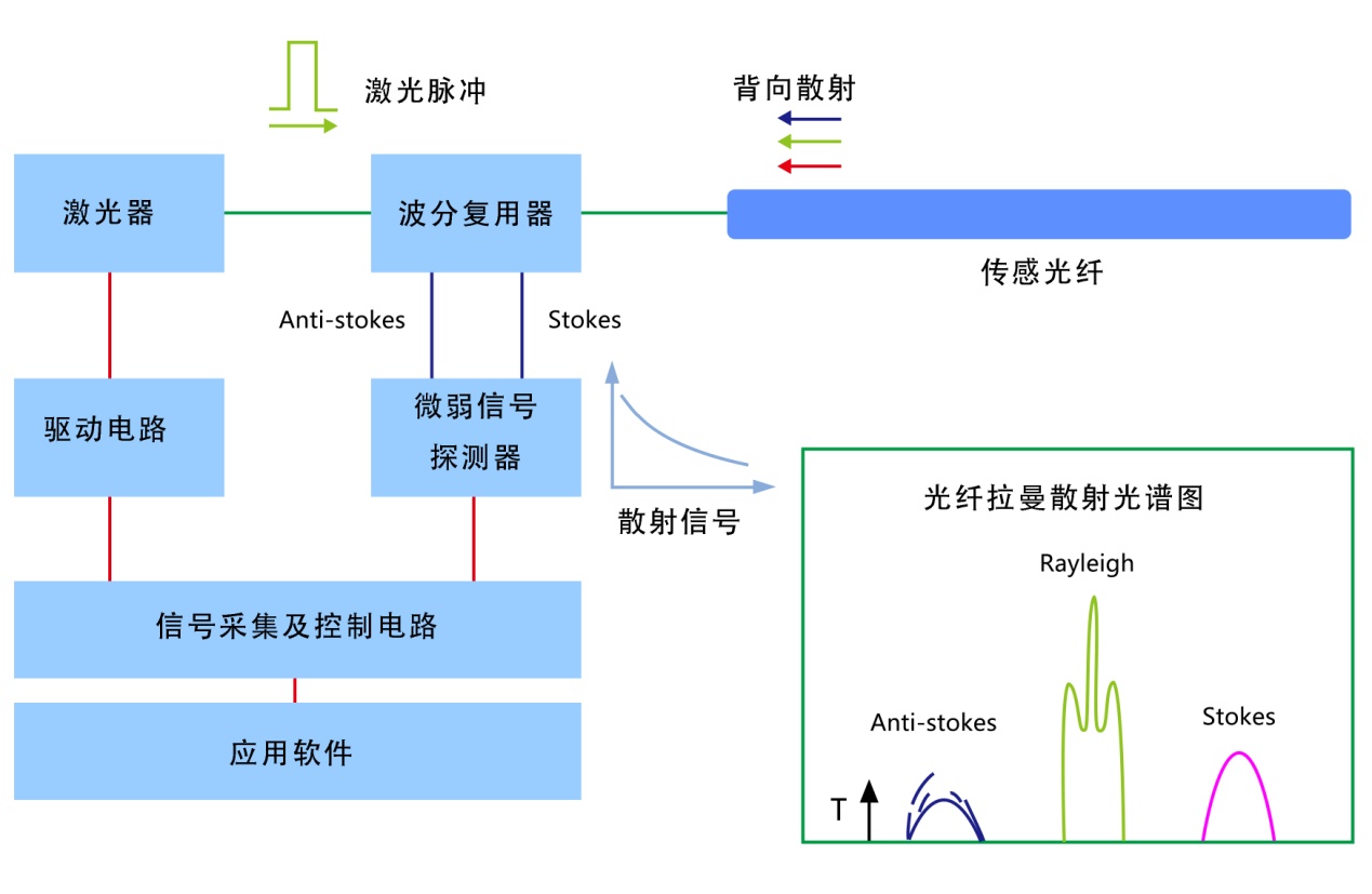 溫度是最重要的物理量之一,在我們的生產和生活中,溫度的測量非常重要。溫度變化的監測,可以有效的避免隧道、管線及高溫反應爐等安全隱患的發生,以及發生事故時協助救援方案的制定。然而傳統的測溫技術由于感溫電纜測溫精度和定位精度差等原因不能滿足要求;精確度較高的點式測溫儀或熱電偶又解決不了線性與連續監測的需要。因此,可以很好的解決以上難題,兼具精度要求及連續監測功能的分布式光纖測溫系統(簡稱DTS)應運而生。