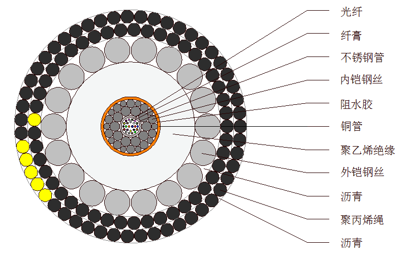 該光纜適用于在敷設、埋設、回收、運行時具有單層鎧裝防護的淺海中特定區(qū)域