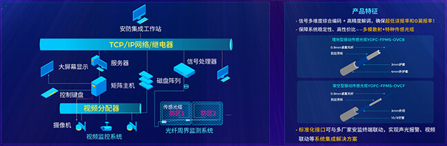 周界安防監(jiān)測系統(tǒng)是長飛公司將光纖特性進行更深層次延伸與開發(fā)的成果,基于特種光纖的多模散射特性,結(jié)合分布式光纖傳感系統(tǒng),采用多維度信號編碼及高精度解調(diào)功能,提升安防監(jiān)測的及時性和準確度。且此系統(tǒng)具備標準化的接口,可與多廠家的攝像頭和視頻監(jiān)控系統(tǒng)聯(lián)動,將園區(qū)的整個安全管理進行有機的融合,真正做到安防無死角,同時大幅降低安保人員工作強度。