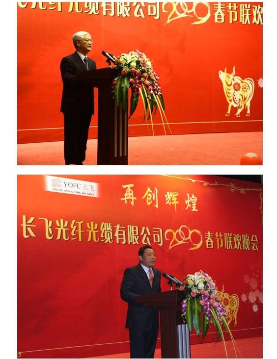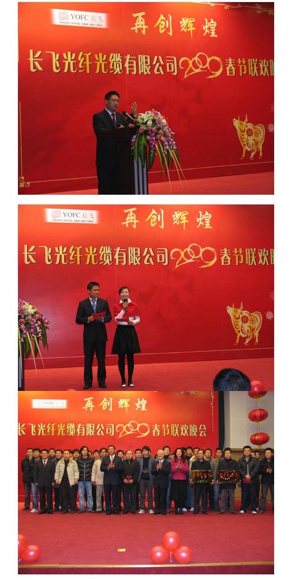 2009年1月20日,長飛公司2009年新春聯歡晚會在武漢市東湖新技術開發區科技會堂隆重舉行。市政府常務副市長袁善臘先生、市政府副秘書長唐惠虎先生、東湖開發區工委書記、管委會主任劉傳鐵先生、市商務局副局長王昊先生、市科技局副局長孫明安先生等領導同長飛公司全體員工及家屬一道共同聯歡,喜迎2009年新春佳節。