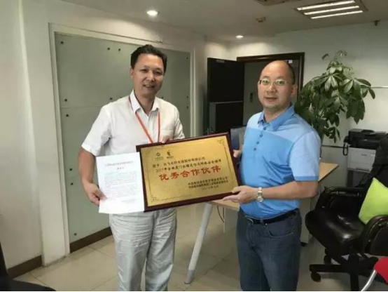 中國移動福建公司采購部總經理林志強(右)為長飛公司頒發獎牌