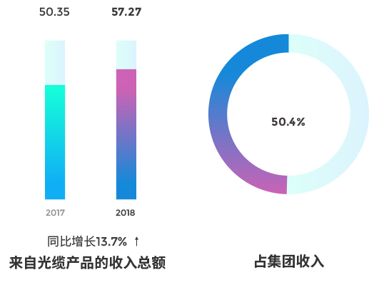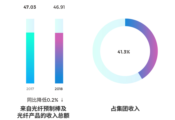 2018年,長飛光纖經營業績再創歷史新高,其中營業收入為人民幣113.60億元,同比增長約為9.6%;毛利及毛利率分別為人民幣32.28億元、28.4%;歸屬于母公司股東的凈利潤為人民幣 14.89 億元,同比增長約為17.4%。