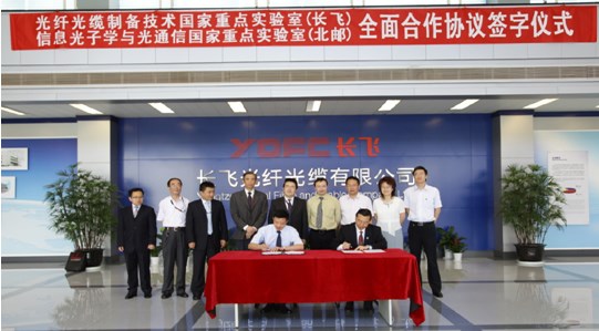 會議期間,在夏建明處長的主持下,與會專家和代表見證了信息光子學與光通信國家重點實驗室(北郵)主任任曉敏教授與光纖光纜制備技術國家重點實驗室主任羅杰博士簽署全面合作協議,雙方承諾將全面推進彼此間的合作。