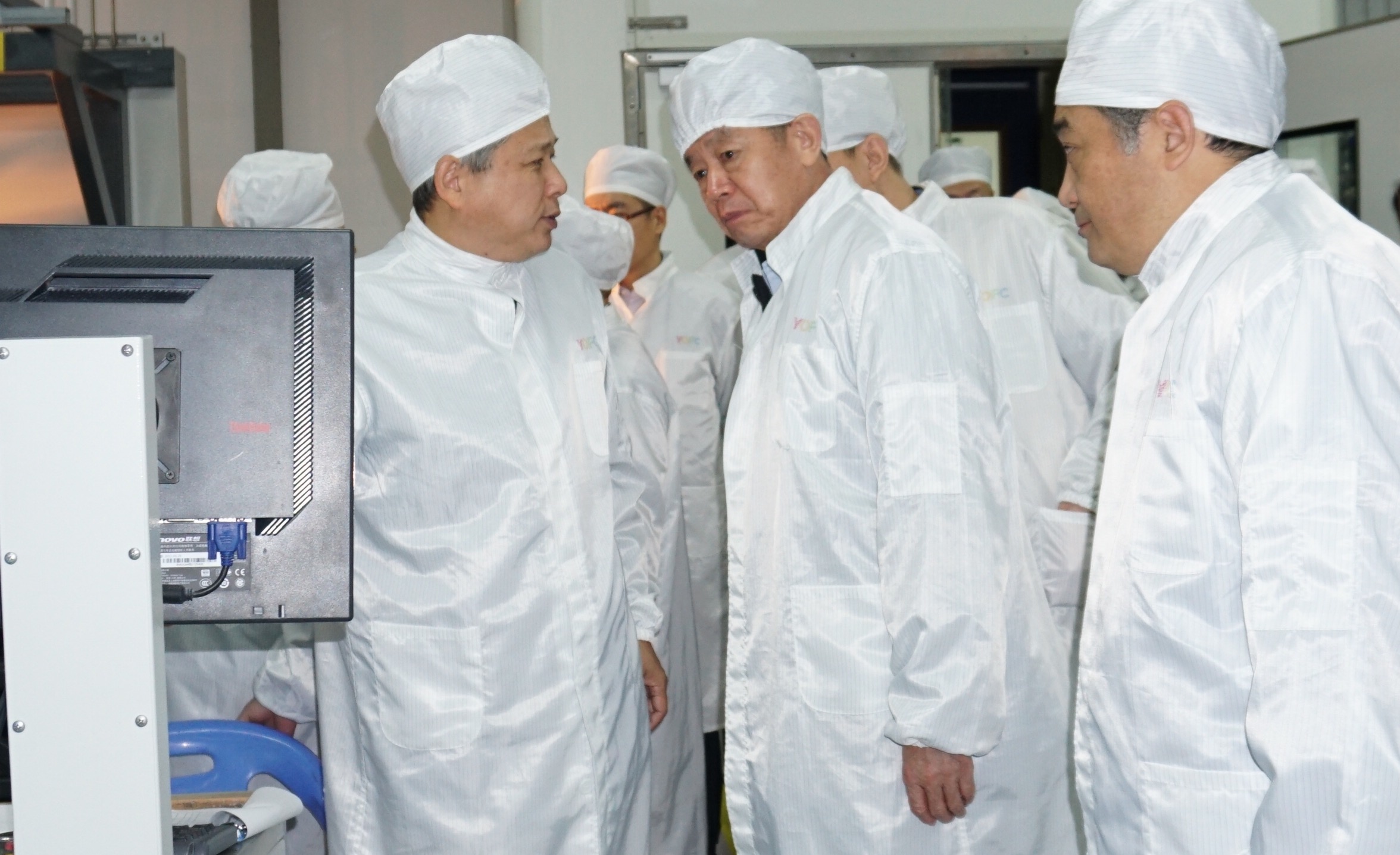 在生產車間,張建國副部長一行調研了長飛公司自主研發制造的高端生產設備和光纖生產的整個流程,對長飛公司目前不僅能自行研發生產光纖預制棒、光纖、光纜等系列產品,還可以制造高端生產設備,具備從工藝、技術到設備全套輸出的能力都表示贊賞。