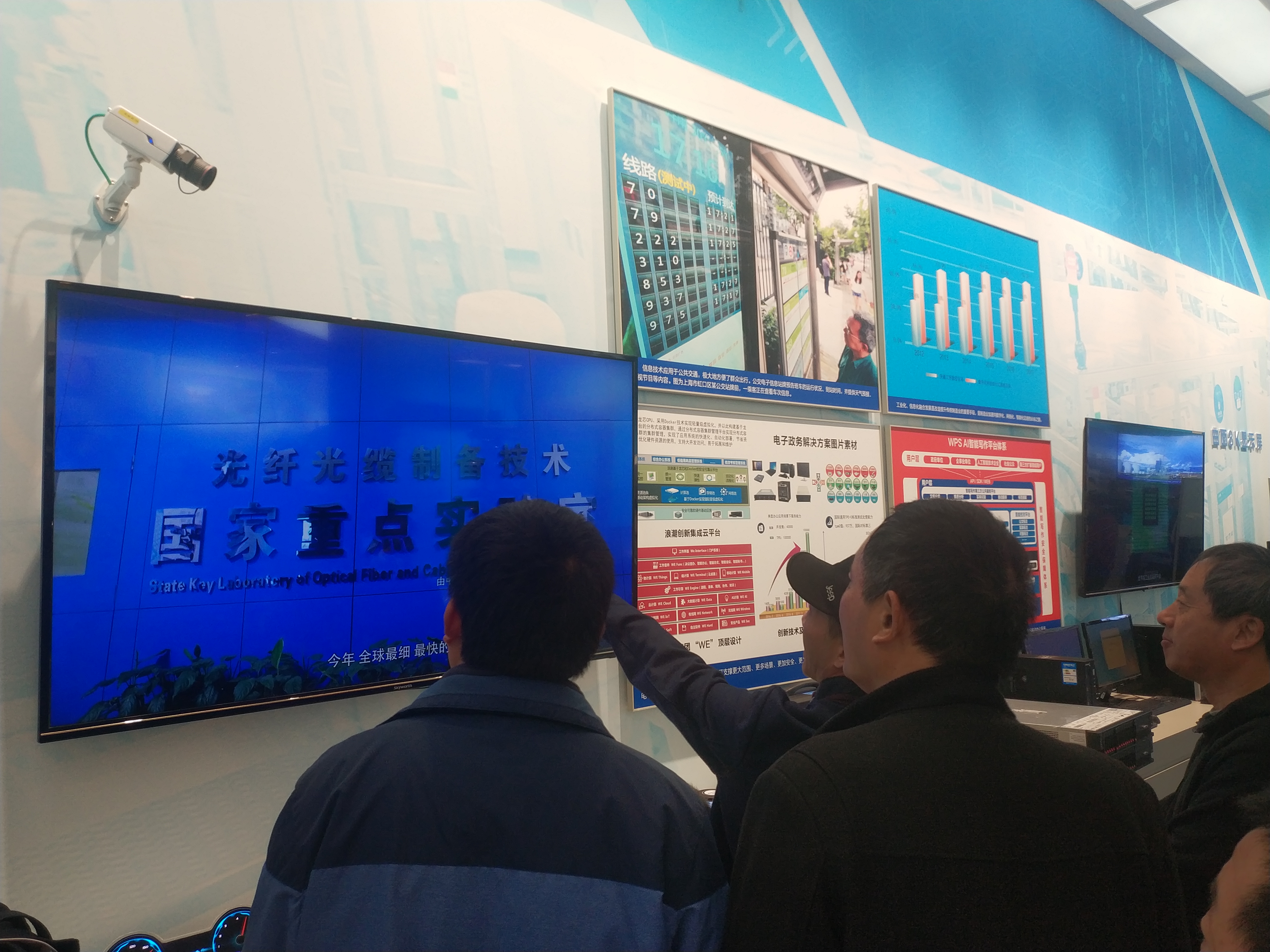 參展觀眾紛紛駐足觀看長飛公司展示視頻