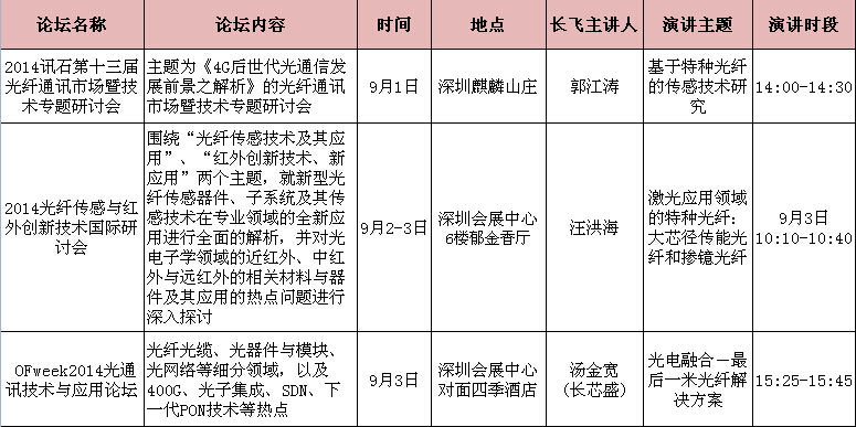 第16屆中國國際光電博覽會(CIOE2014)將于9月2~5日在深圳會展中心舉行,長飛光纖光纜股份有限公司將攜全系列光纖光纜產品及綜合解決方案參展,并在展會期間的論壇活動發表多個主題的演講(見下表)。長飛公司展位號為:1B09歡迎您蒞臨參觀指導!