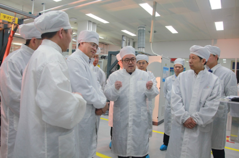 參觀車間時,莊丹向任局長一行介紹了光纖預制棒、光纖產品的主要生產工藝流程,并強調作為工信部首批“智能制造示范企業”,長飛公司積極踐行“工業4.0”,著力建設智能制造工廠,致力于全面構建和實施智能制造新模式。