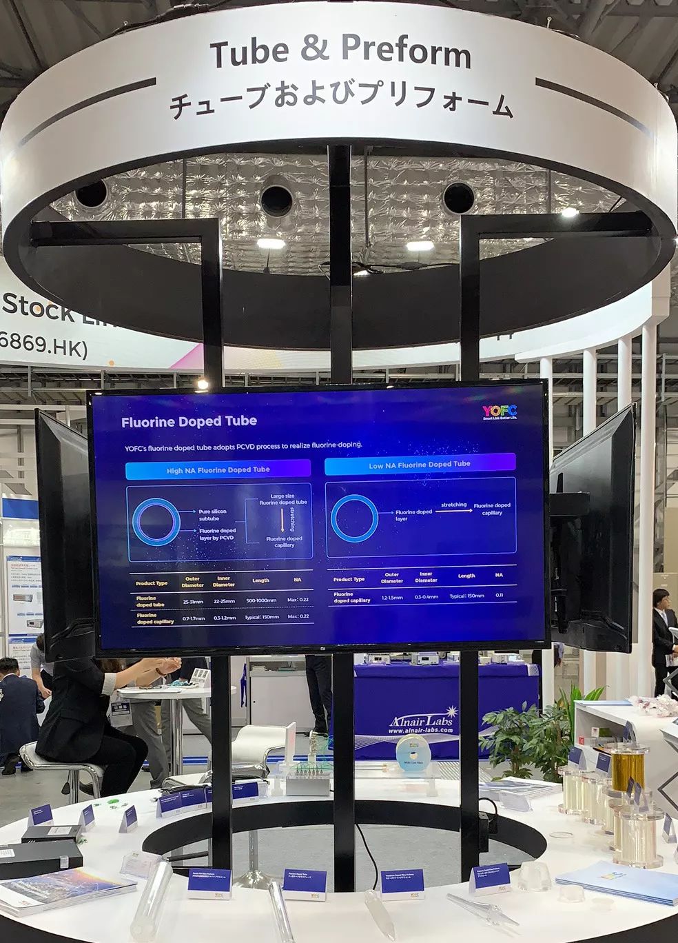PCVD工藝具備靈活精確的剖面設計、大棒工藝和深摻氟等優勢,是特種光纖的重要法寶。本次展會,長飛公司重點展示特種光纖預制棒與摻氟管材(數值孔徑最高可達0.22)等產品。此外,長飛公司還可為客戶提供光纖預制棒定制服務,如波導、模式、摻雜以及幾何尺寸等指標均可在一定范圍內按照客戶要求進行定制。