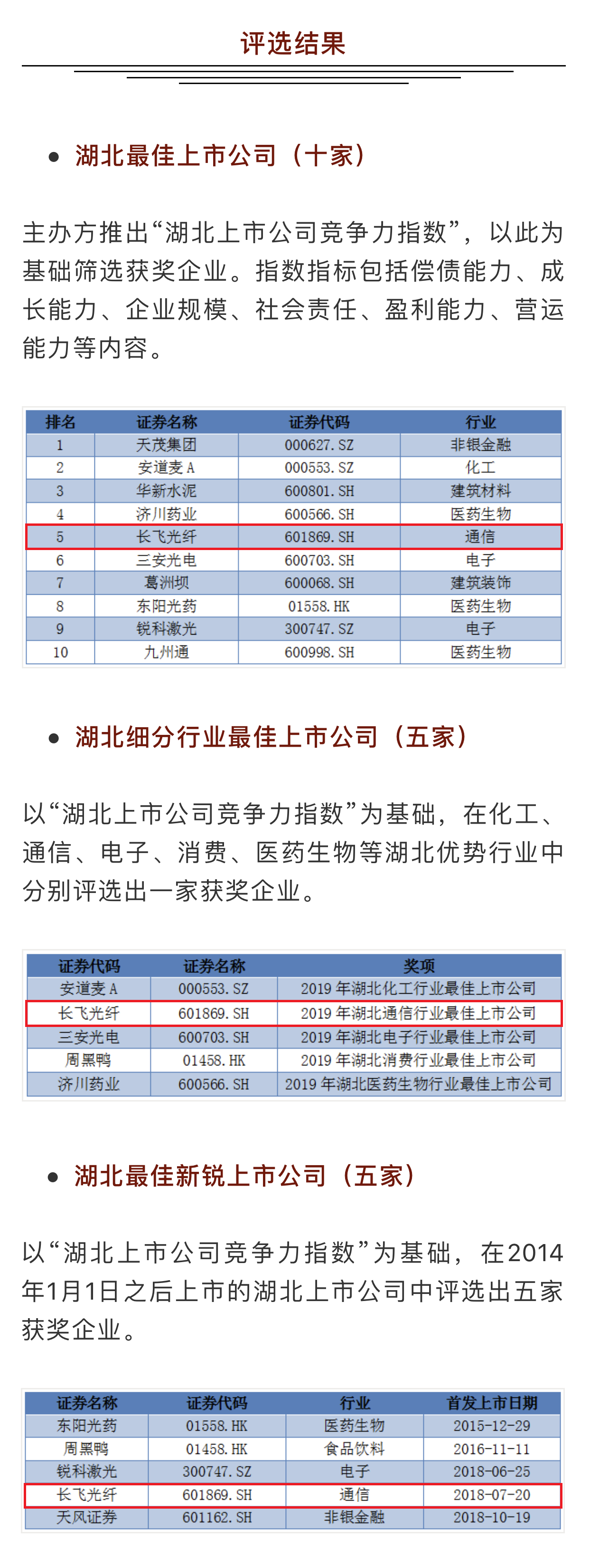 昨日,由湖北日報(bào)傳媒集團(tuán)主辦、支點(diǎn)雜志/支點(diǎn)財(cái)經(jīng)承辦的“2019年度(首屆)湖北最佳上市公司評選”結(jié)果公布,長飛光纖光纜股份有限公司(以下簡稱“長飛公司”,股票代碼:601869.SH、06869.HK)榮獲“湖北最佳上市公司”、“湖北通信行業(yè)最佳上市公司”、“湖北最佳新銳上市公司”等三項(xiàng)大獎(jiǎng)。