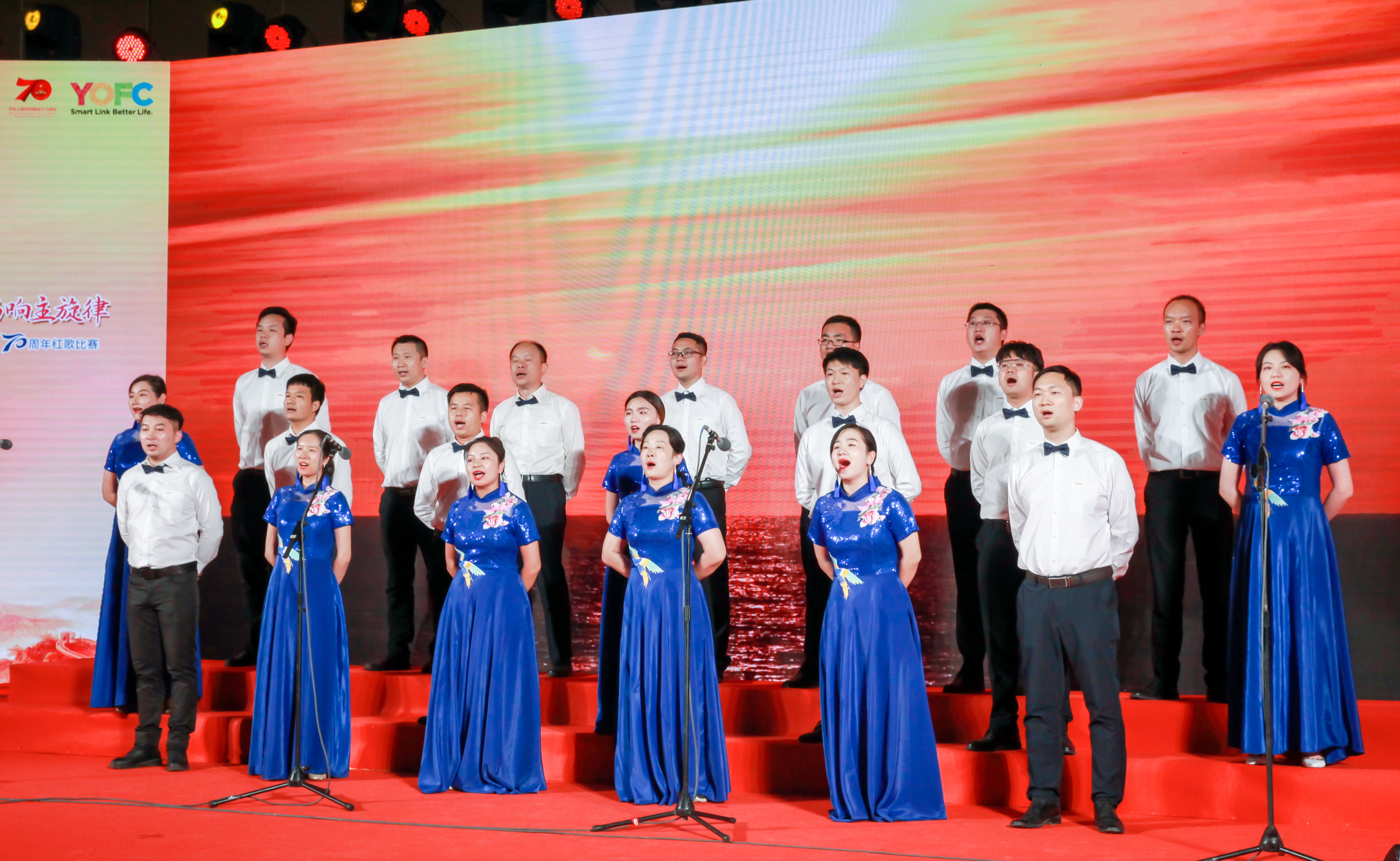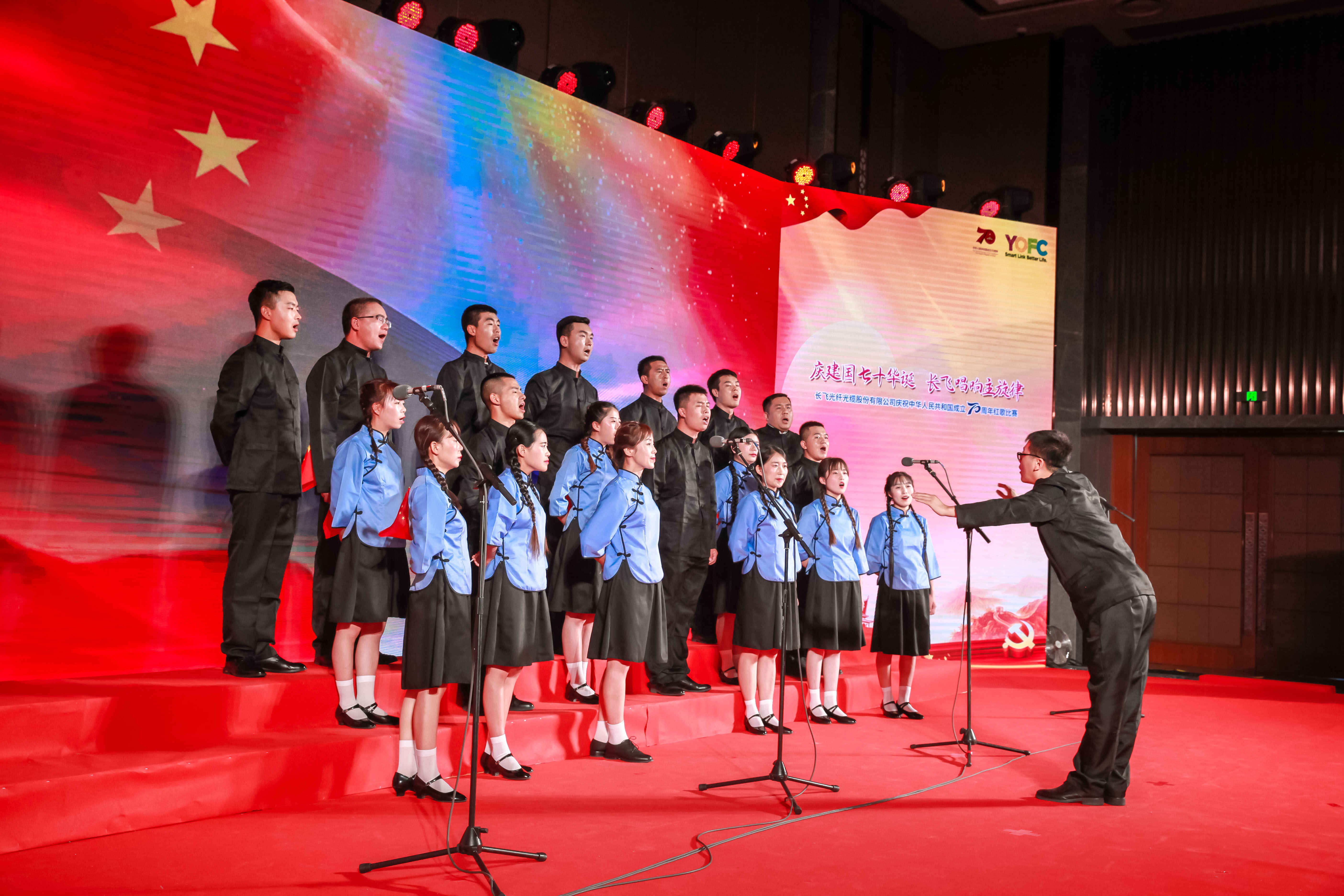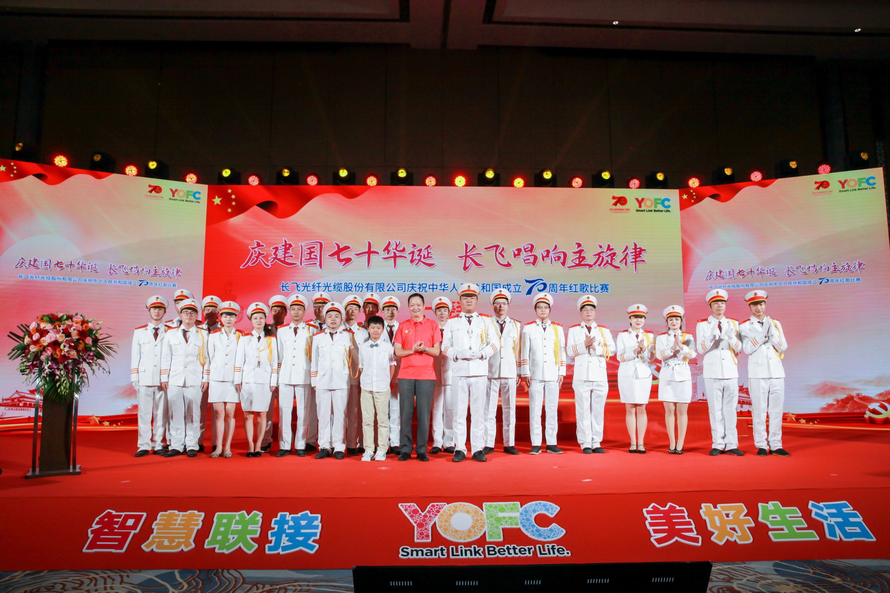 70年砥礪前行,盡書奮進華彩,70年春華秋實,盡顯精彩樂章。長飛公司共300余名員工及其家屬歡聚一堂,以飽滿的激情縱情歡唱,共祝祖國七十華誕。