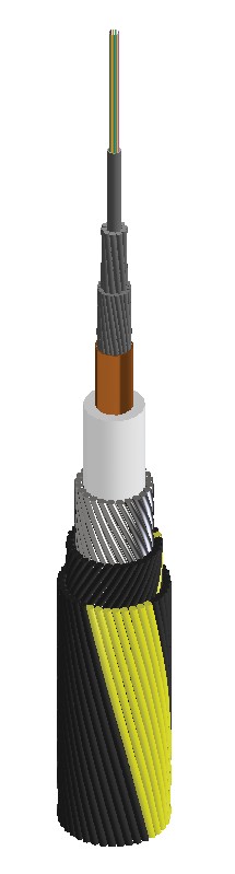 帶有單層鎧裝防護(hù)的輕型光纜,該光纜適用于在敷設(shè)、回收、運(yùn)行時(shí)要求提升一定抗拉性能的特定區(qū)域