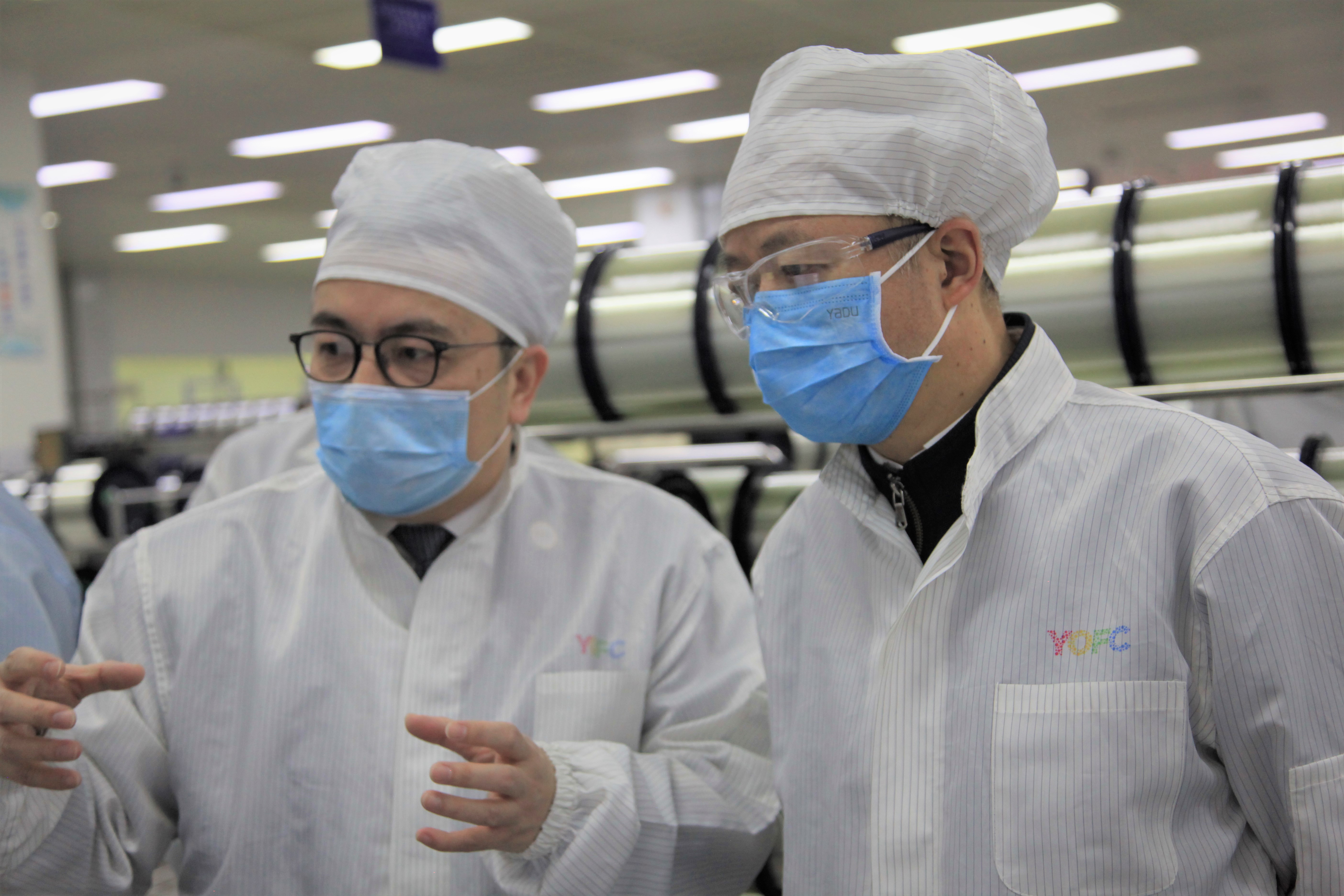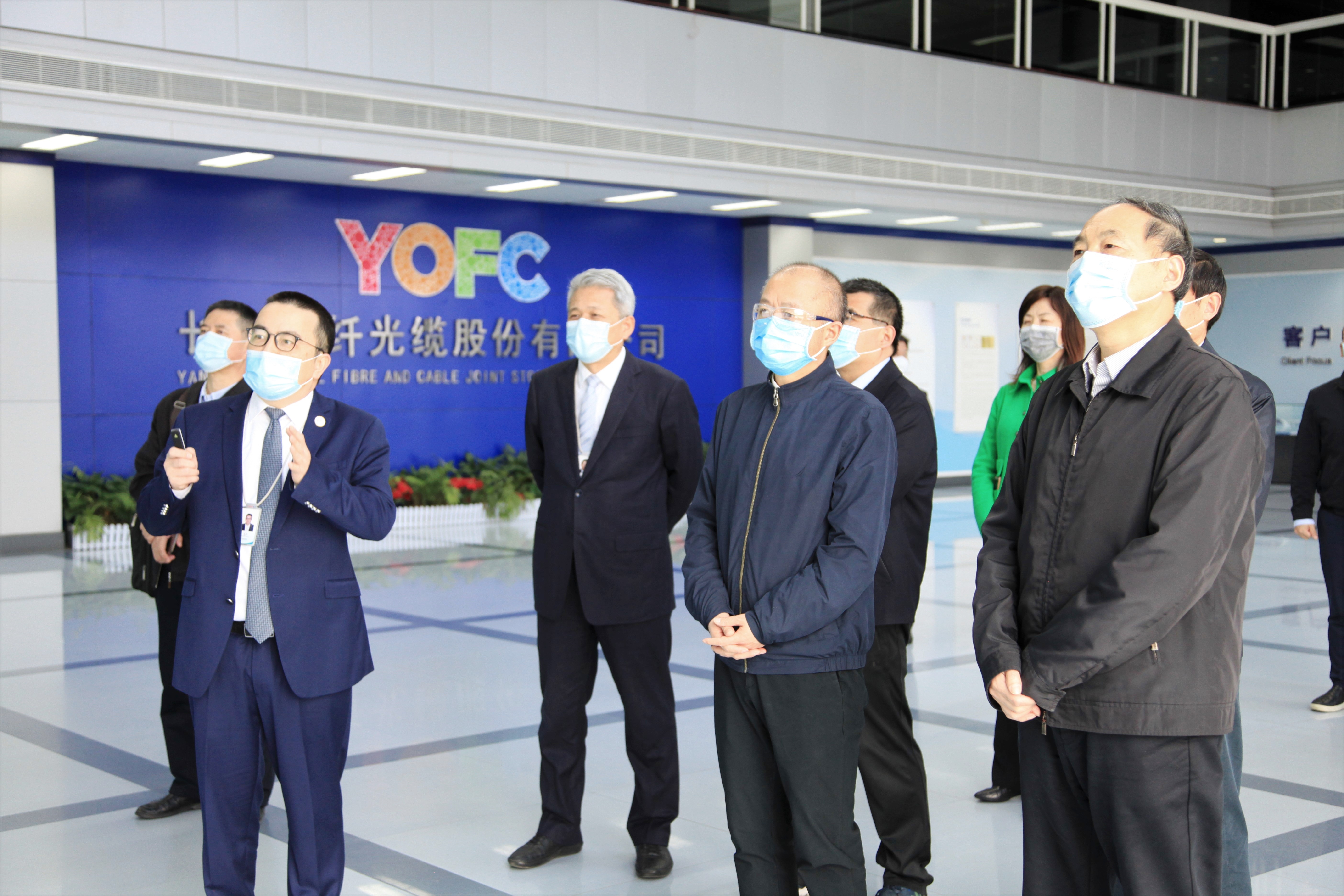 3月23日,中央指導組成員、工業(yè)和信息化部黨組成員、副部長王江平,原材料司副司長陳凱民,消費品工業(yè)司二級巡視員張軍,部中小企業(yè)促進中心主任單立波調研長飛光纖光纜股份有限公司(以下簡稱“長飛公司”,股票代碼:601869.SH、06869.HK)疫情防控和復工復產(chǎn)情況,湖北省經(jīng)濟和信息化廳黨組成員、副廳長吳方軍,武漢市委常委、武漢東湖高新區(qū)黨工委書記汪祥旺,武漢東湖高新區(qū)管委會主任陳平,武漢市經(jīng)濟和信息化局局長黨蓁陪同調研。長飛公司執(zhí)行董事兼總裁莊丹、高級副總裁閆長鹍接待。?