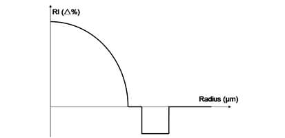 此外,該光纖最典型特征是光纖的芯層直徑有所減小,芯包結(jié)構(gòu)設(shè)計(jì)針對(duì)基模的模場(chǎng)直徑進(jìn)行了優(yōu)化,以匹配單模傳輸系統(tǒng)的標(biāo)準(zhǔn)單模光纖的模場(chǎng)直徑,保證準(zhǔn)基模傳輸,降低耦合時(shí)多徑串?dāng)_對(duì)信號(hào)的干擾,可實(shí)現(xiàn)更高速率、更遠(yuǎn)距離的傳輸,如圖1所示。