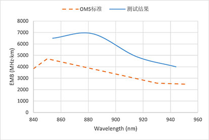 準(zhǔn)單模傳輸是將大部分能量能夠注入到多模光纖的基模中,并在較長(zhǎng)的距離能保持準(zhǔn)單模的傳輸狀態(tài),使多模光纖能夠?qū)崿F(xiàn)單模光纖的傳輸性能。單多模通用型光纖的芯層采用拋物線型折射率分布,受益于長(zhǎng)飛PCVD技術(shù),能夠?qū)崿F(xiàn)850nm至950nm波段優(yōu)異的帶寬性能,滿足OM5的帶寬要求,在短距離傳輸中具有低成本、低功耗的優(yōu)勢(shì);同時(shí)采用抗彎的結(jié)構(gòu)設(shè)計(jì),具有優(yōu)異的彎曲不敏感性能。