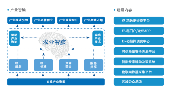潛江全力推動(dòng)互聯(lián)網(wǎng)+現(xiàn)代農(nóng)業(yè),2018年上線的全國首家蝦稻產(chǎn)業(yè)大數(shù)據(jù)中心,由長飛公司打造,通過物聯(lián)網(wǎng)信息采集,監(jiān)管平臺(tái)和指揮中心建設(shè),為蝦稻產(chǎn)業(yè)的宏觀調(diào)控、生產(chǎn)調(diào)度、消費(fèi)預(yù)測等提供科學(xué)決策:通過物聯(lián)網(wǎng)數(shù)據(jù)采集、監(jiān)管數(shù)據(jù)采集和生產(chǎn)過程數(shù)據(jù)采集,初步實(shí)現(xiàn)產(chǎn)業(yè)鏈數(shù)據(jù)統(tǒng)一匯集、整理,充分挖掘產(chǎn)業(yè)的數(shù)據(jù)價(jià)值,為產(chǎn)業(yè)的宏觀調(diào)控、生產(chǎn)調(diào)度、消費(fèi)預(yù)測等各方面提供決策支持;通過可信溯源的全產(chǎn)業(yè)鏈追溯體系和應(yīng)急指揮調(diào)度,實(shí)現(xiàn)產(chǎn)業(yè)的質(zhì)量安全保障和品牌價(jià)值保護(hù);通過專家平臺(tái)的技術(shù)規(guī)范輸出和服務(wù)支撐實(shí)現(xiàn)產(chǎn)業(yè)的規(guī)模化有序增長(標(biāo)準(zhǔn)化產(chǎn)業(yè)輸出);通過供求關(guān)系分析、價(jià)格指數(shù)分析、決策支撐和指揮調(diào)度實(shí)現(xiàn)品牌價(jià)值的變現(xiàn),從而保障產(chǎn)業(yè)的規(guī)范有序高增長。
