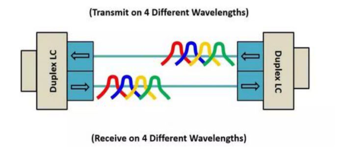 同時支持未來的400G以太網,對于更高速的400G以太網應用比如400GBase-SR4.2(4對光纖2個波長,每個通道采用50G PAM4)或者400G Base-SR4.4((4對光纖4個波長,每個通道采用25GNRZ),OM5光纖更具有傳輸距離的優勢。