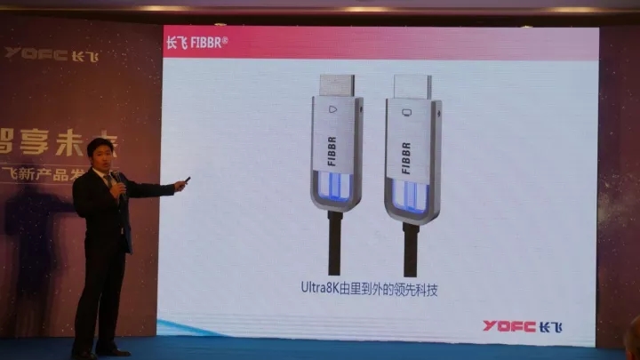 隨著人們對影音娛樂的要求越來越高,能夠滿足人肉眼分辨極限的8K時代已經(jīng)向我們走來。分辨率的大幅上升意味著數(shù)據(jù)傳輸量也會大幅增加,8k所需48Gbps帶寬較4k的18Gbps帶寬增加了2.67倍,作為連接信號源與顯示設(shè)備之間的HDMI線所肩負(fù)的任務(wù)也同樣倍增。長飛公司本著敢為人先的精神,通過研發(fā)團(tuán)隊夜以繼日的工作終于在近期發(fā)布了世界第一款8K光纖HDMI,該產(chǎn)品不僅能夠滿足HDMI2.1協(xié)議要求的48Gbps帶寬的基本要求,而且在48Gbps的基礎(chǔ)上多增加8Gbps的冗余量達(dá)到56Gbps的數(shù)據(jù)帶寬,同時可以將長度達(dá)到50米。在9月初的美國CEDIA大展上展示了FIBBR?HDMI2.1線材原型,榮獲美國第一影音論壇AVSForum頒發(fā)的Best of CEDIA 2017大獎。