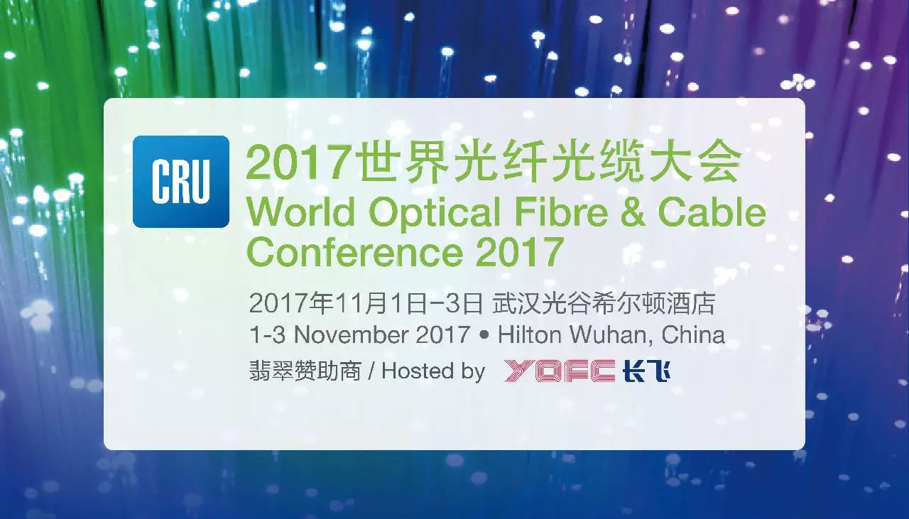 由CRU(Commodity Research Unit,英國商品研究所)和長飛光纖光纜股份有限公司聯(lián)合主辦的2017世界光纖光纜大會將于11月1-3日在武漢光谷希爾頓酒店舉行。作為世界首屈一指的光纖光纜行業(yè)盛會,本次CRU大會邀請了預(yù)制棒、光纖光纜及通信電纜產(chǎn)品全球領(lǐng)先制造企業(yè),與產(chǎn)業(yè)供應(yīng)鏈相關(guān)客戶及服務(wù)商齊聚一堂,共商行業(yè)發(fā)展、洽談合作機遇。預(yù)計將迎來政府部門、電信運營商、設(shè)備商、行業(yè)組織以及研究機構(gòu)的嘉賓與全球頂尖行業(yè)專家等700多名與會人員。