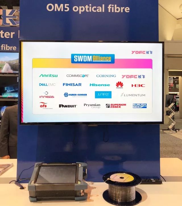 當前正處于通信行業轉型升級的關鍵時期,網絡發展對光纖技術提出了新的要求,長飛公司未雨綢繆,在幾年前就啟動了下一代通信光纖的研發,本次展會,長飛公司展出了在通信光纖領域的新成果:遠貝®超強超低衰減大有效面積光纖和超貝®寬帶OM5彎曲不敏感多模光纖。對于400G系統,采用超低損耗大有效面積G.654光纖,總體傳輸性能可以提升3dB,能有效延長系統無電中繼傳輸距離,減少電中繼站數量,這種新型光纖將會是骨干網絡長距離傳輸的最佳選擇。長飛超貝®寬帶OM5彎曲不敏感多模光纖是為短波長的波分復用設計的,在850-950nm波長內都具有高寬帶,為未來100Gb/s和400Gb/s多波長多模系統提供了光纖解決方案。