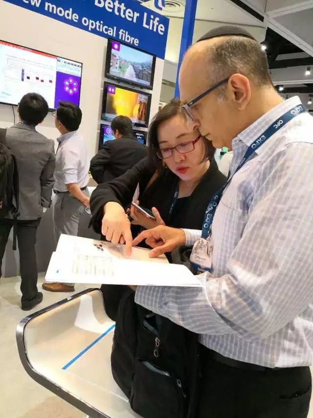 在本屆OFC的展臺上,長飛公司重點展示了少模光纖通信系統在視頻傳輸上的應用,現場進行了通過一根少模光纖的3個不同模式分別傳輸3套4K高清視頻的實時演示,直觀展示少模光纖在通信上的實際應用效果,讓人們感受到少模通信應用就在身邊,可以進入到家庭生活之中。本次展示吸引了大量學術界及行業內人士的圍觀,成為OFC展覽的一大亮點。