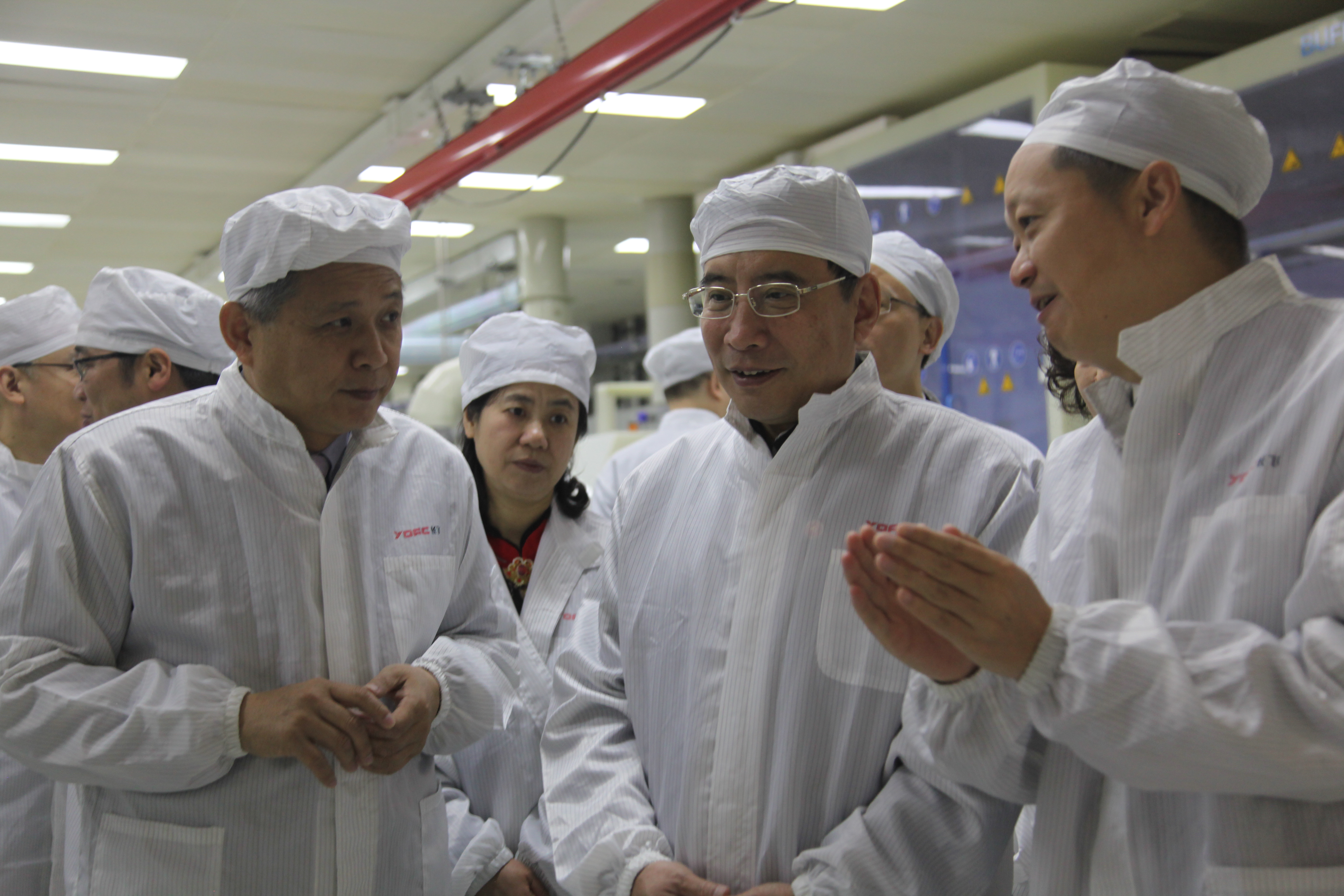 4月26日,工業(yè)與信息化部部長、黨組書記、國家制造強國建設(shè)領(lǐng)導(dǎo)小組副組長苗圩視察長飛光纖光纜股份有限公司(以下簡稱“長飛公司”,股票代碼:06869.HK),對長飛公司在世界光通信領(lǐng)域取得的驕人成績及在光纖光纜制造方面的強大實力和創(chuàng)新力表示高度贊賞和充分肯定。工信部辦公廳、電子信息司、湖北省經(jīng)信委、武漢市經(jīng)信委等相關(guān)領(lǐng)導(dǎo)陪同視察。長飛公司黨委書記、董事長馬杰,黨委副書記、董事鄭慧麗,副總裁閆長鹍,副總裁兼董事會秘書周理晶出席接待。