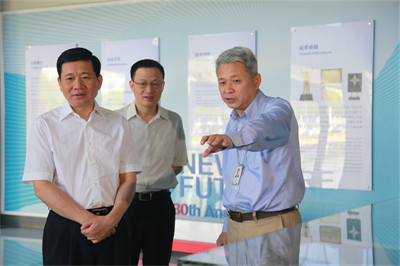 在長飛公司展廳,王祥喜一行首先聽取了閆長鹍對企業近年來發展情況的匯報,了解了長飛沿著國家“一帶一路”倡議路線積極在海內外布局的國際化發展戰略、以及公司主要產品的創新發展成果和自主研發情況。隨后,王祥喜一行專程來到運營指揮中心和光纖生產車間,參觀了解長飛在大力推進生產自動化、信息化、智能化發展,推動企業戰略布局和技術創新能力提升等方面所做的主要工作,認真察看由長飛自主研發制造的高端生產設備和光纖生產的整個流程,詳細了解兩化深度融合給企業在生產管理、產品質量等方面帶來的積極改變。